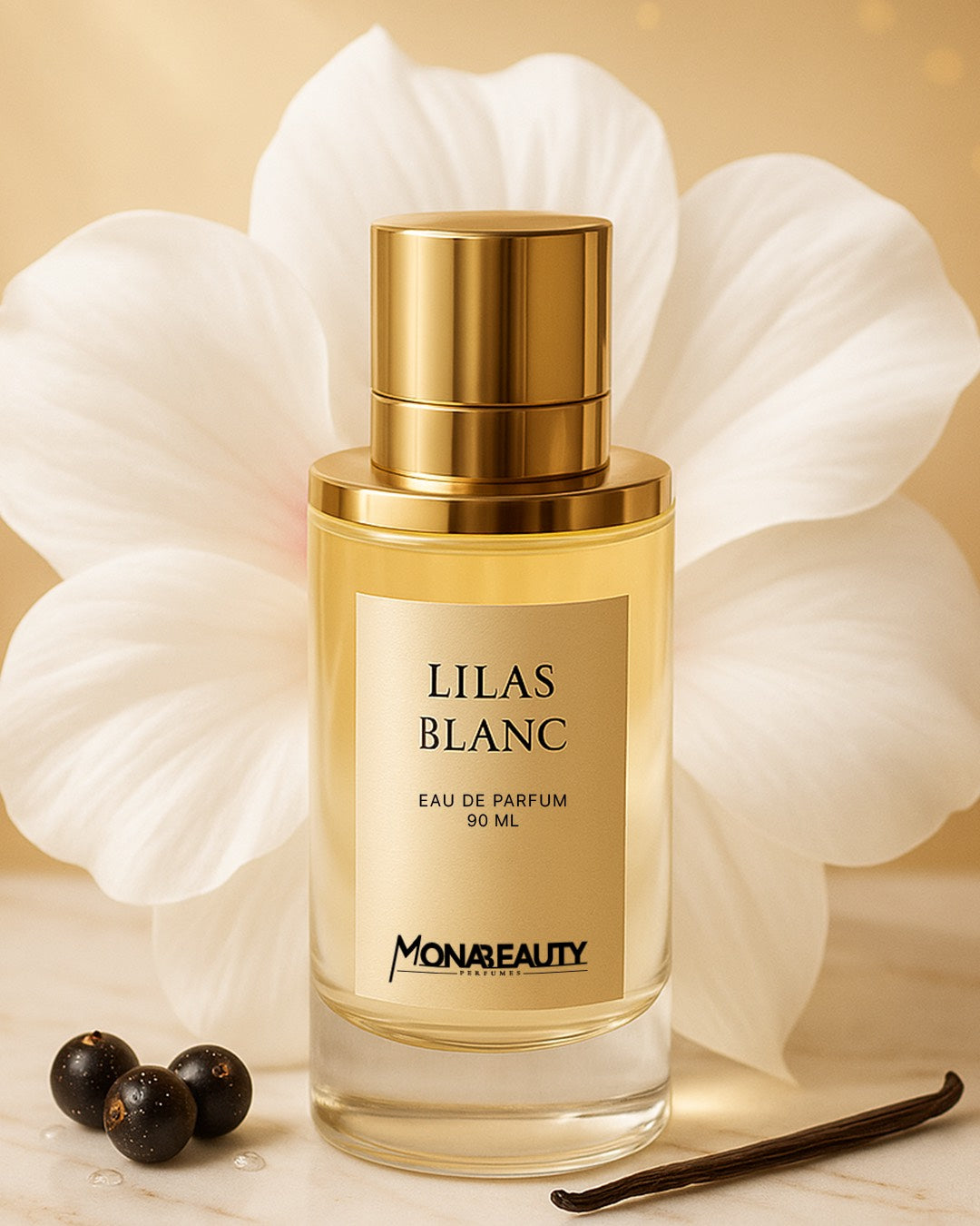 Lilas Blanc Eau de Parfum (EDP) by Mona Beauty is a floral-oriental fruity perfume with rare hibiscus flower for women and men.